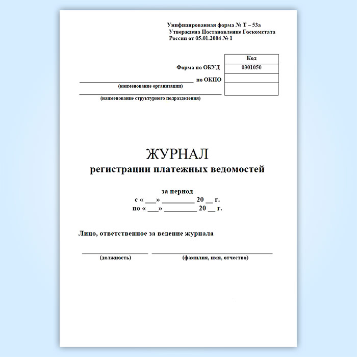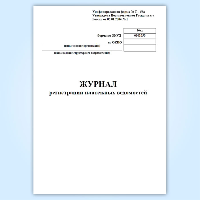 Журнал регистрации платежных ведомостей (унифицированная форма № Т-53а, форма по ОКУД 0301050) в Волгограде купить