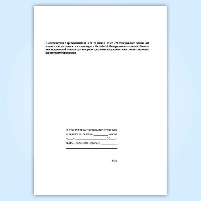 Журнал регистрации соглашений об оказании юридической помощи, заключаемых адвокатами с гражданами и юридическими лицами в Волгограде купить