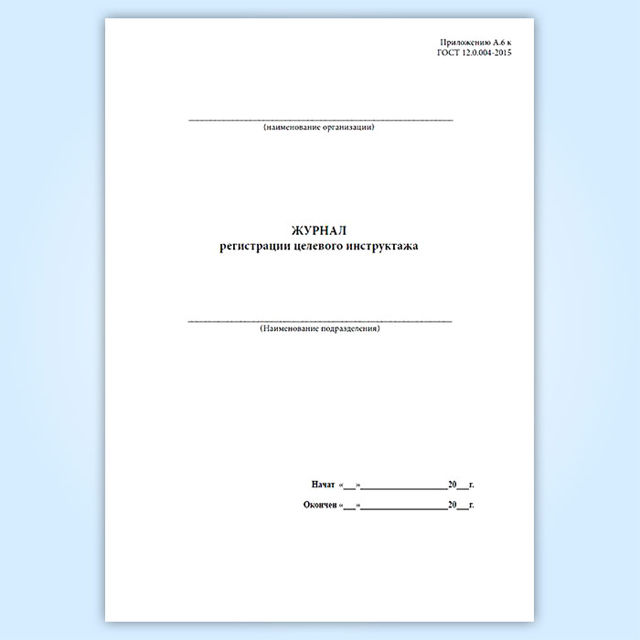 Журнал регистрации целевого инструктажа (ГОСТ 12.0.004-2015) в Волгограде купить