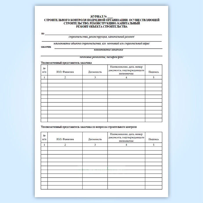 Журнал строительного контроля подрядной организации в Волгограде купить