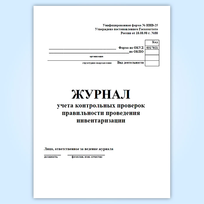 Журнал учета контрольных проверок правильности проведения инвентаризаций (форма ИНВ-25) в Волгограде купить