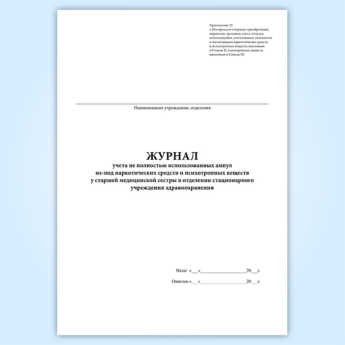 Журнал учета не полностью использованных ампул из-под наркотических средств и психотропных веществ у старшей медицинской сестры в отделении стационарного учреждения здравоохранения в Волгограде купить