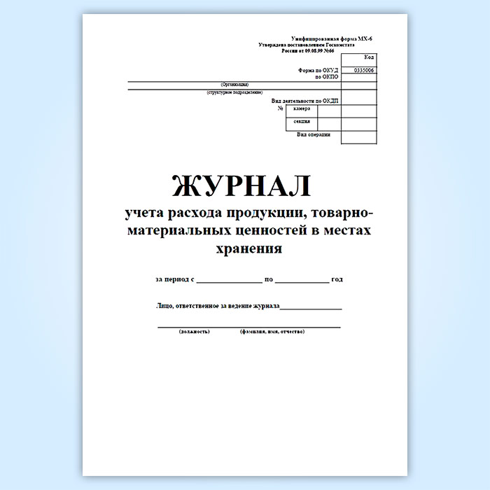 Журнал учета расхода продукции, товарно-материальных ценностей в местах хранения (форма МХ-6) в Волгограде купить