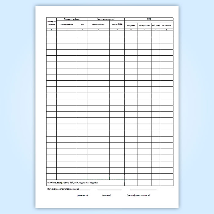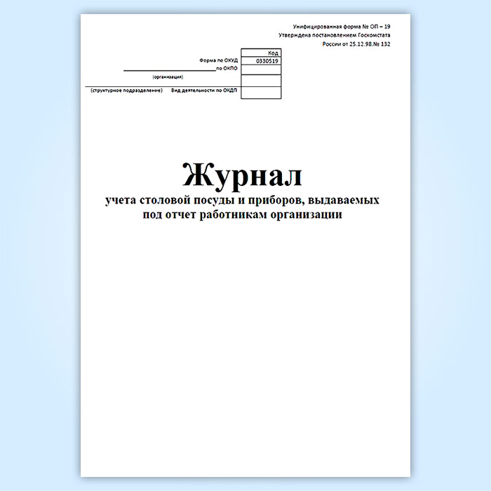 Журнал учета столовой посуды и приборов, выдаваемых под отчет работникам организации (форма № ОП-19) в Волгограде купить