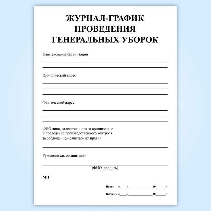 Журнал-график проведения генеральных уборок в Волгограде купить