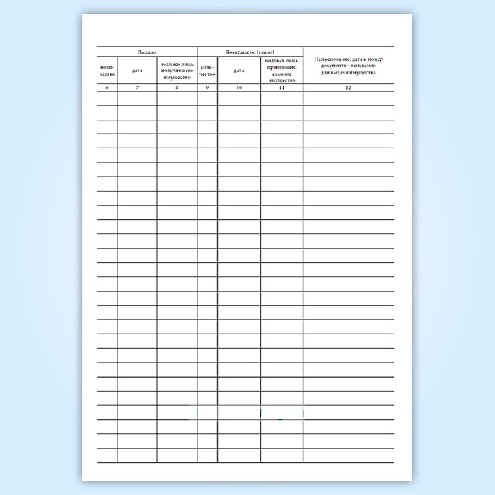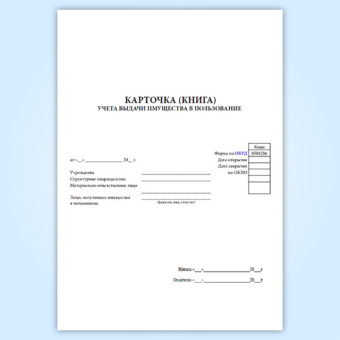 Карточка (книга) учета выдачи имущества в пользование (форма по ОКУД 0504206) в Волгограде купить