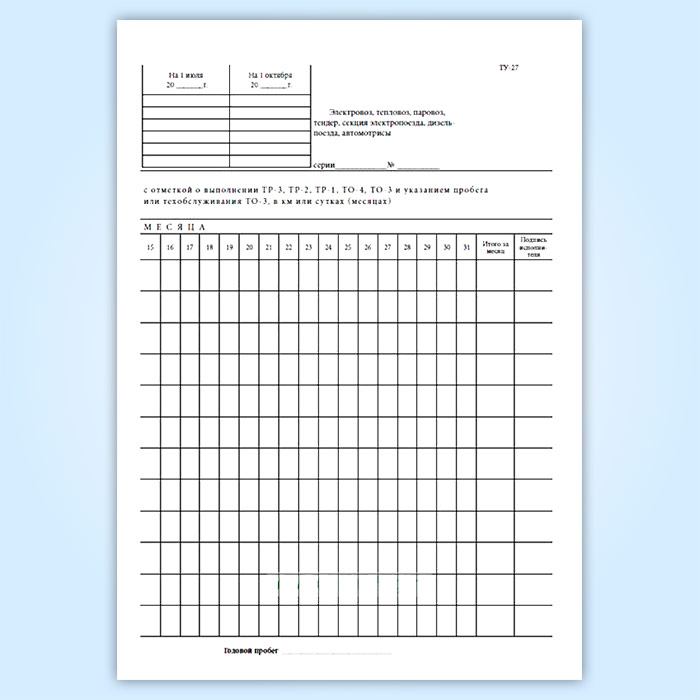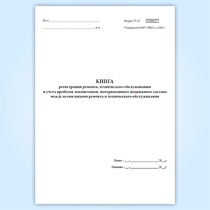 Книга регистрации ремонта, технического обслуживания и учета пробегов локомотивов, моторвагонного подвижного состава между всеми видами ремонта и технического обслуживания (форма ТУ-27) в Волгограде купить