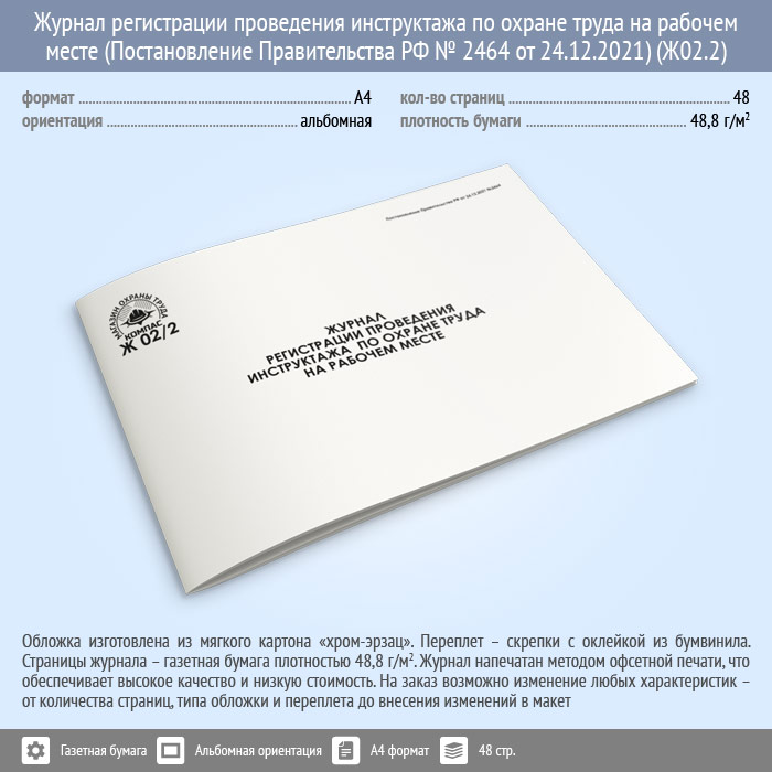 Журнал регистрации проведения инструктажа по охране труда на рабочем месте (Постановление Правительства РФ № 2464 от 24.12.2021) (48 стр., Ж02.2) в Волгограде купить