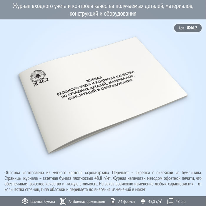 Журнал входного учета и контроля качества получаемых деталей, материалов, конструкций и оборудования (Ж46.2, 48 стр.) в Волгограде купить
