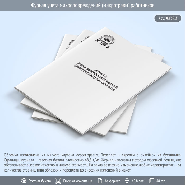 Журнал учета микроповреждений (микротравм) работников (48 стр., Ж159.2) в Волгограде купить
