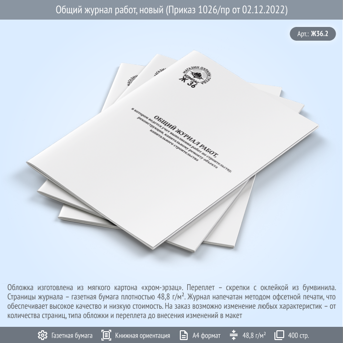Общий журнал работ, новый (Приказ 1026/пр от 02.12.2022, 400 стр., Ж36.2) в Волгограде купить