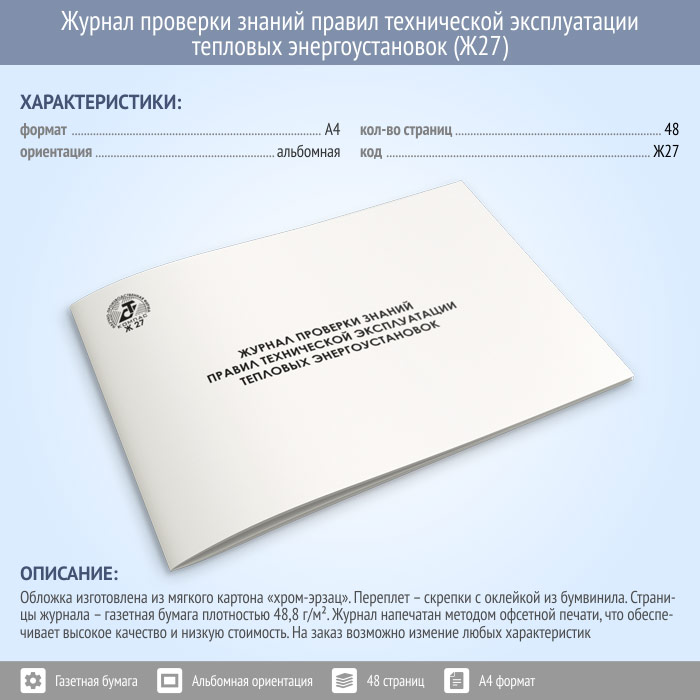 Журнал проверки знаний правил технической эксплуатации тепловых энергоустановок (48 стр., Ж27) в Волгограде купить