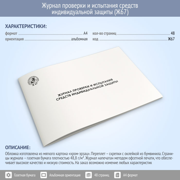 Журнал проверки и испытания средств индивидуальной защиты (48 стр., Ж67) в Волгограде купить