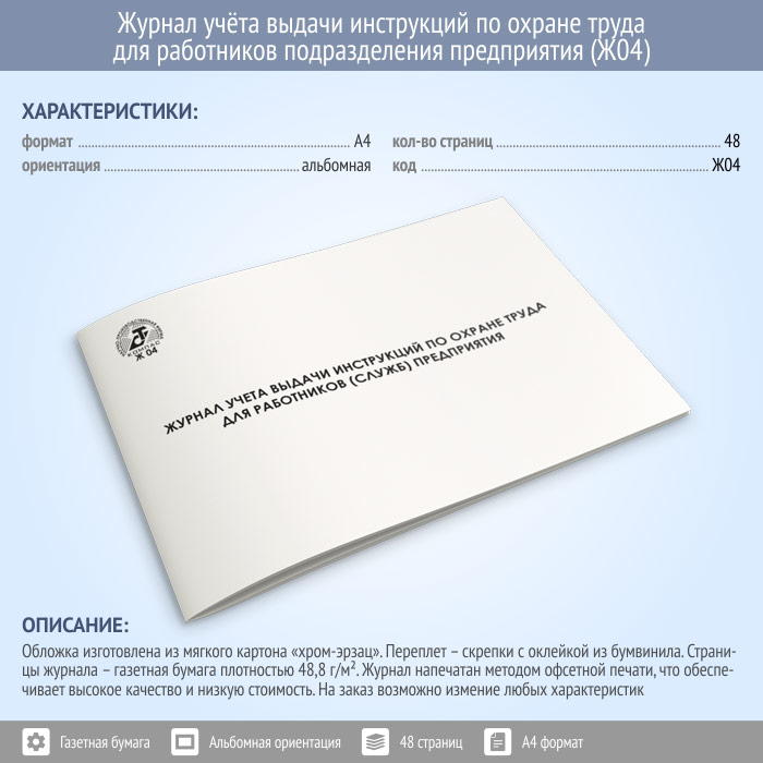 Журнал учета выдачи инструкций по охране труда для работников подразделений (служб) предприятия (48 стр., Ж04) в Волгограде купить