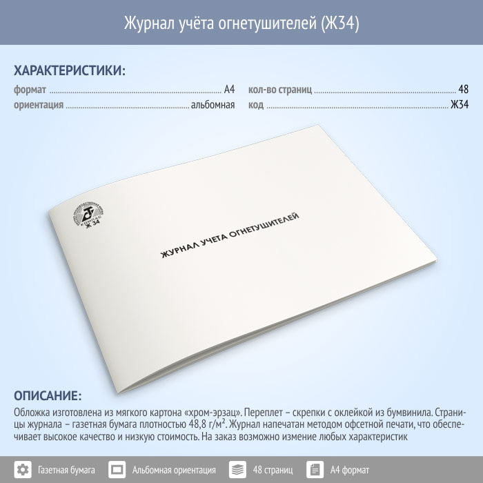 Журнал учета огнетушителей (48 стр., Ж34) в Волгограде купить