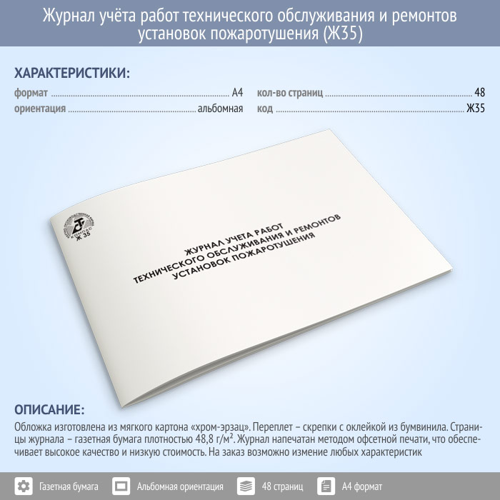 Журнал учета работ технического обслуживания и ремонтов установок пожаротушения (48 стр., Ж35) в Волгограде купить