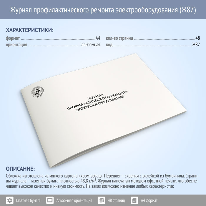 Журнал профилактического ремонта электрооборудования (48 стр., Ж87) в Волгограде купить