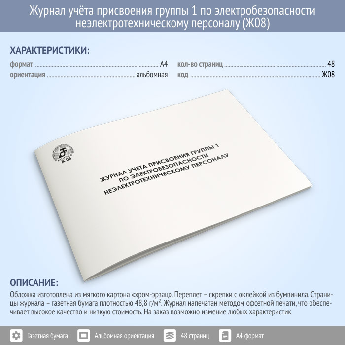 Журнал учета присвоения группы 1 по электробезопасности неэлектротехническому персоналу (48 стр., Ж08) в Волгограде купить