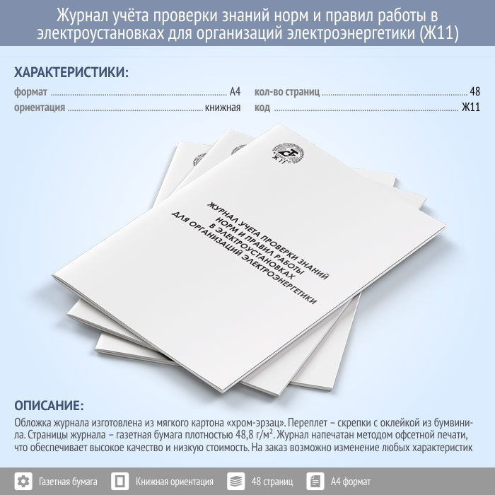 Журнал учета проверки знаний норм и правил работы в электроустановках для организаций электроэнергетики (Приложение 6) (48 стр., Ж11) в Волгограде купить