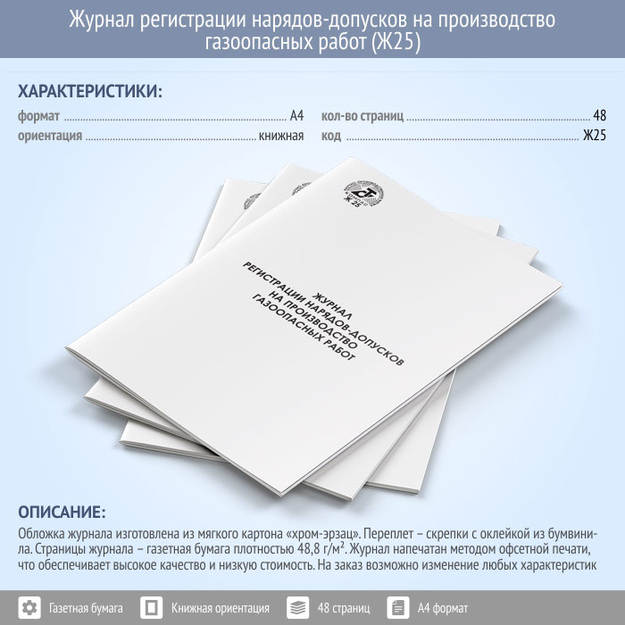 Журнал регистрации нарядов-допусков на производство газоопасных работ (48 стр., Ж25) в Волгограде купить