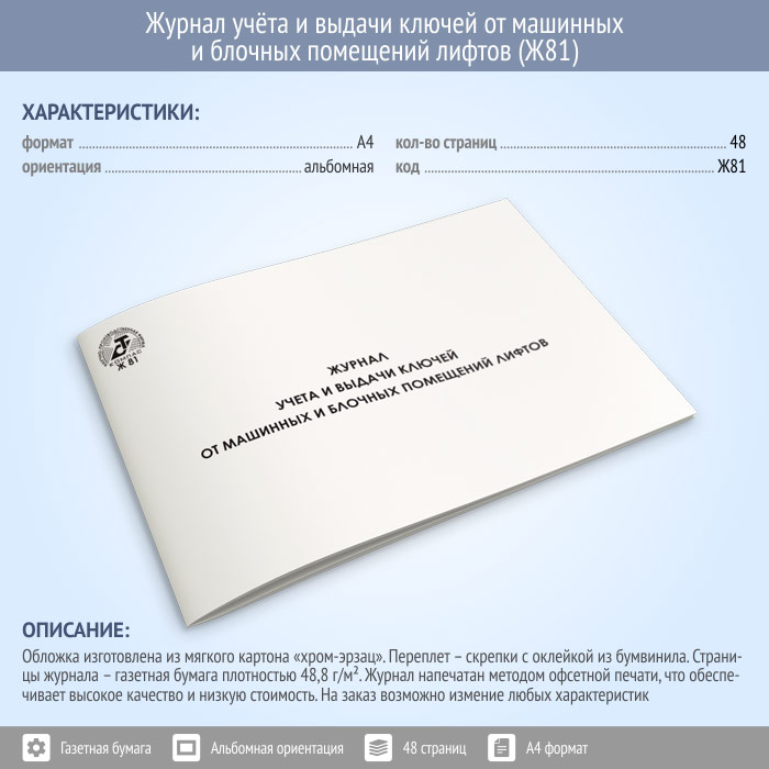 Журнал учета и выдачи ключей от машинных и блочных помещений лифтов (48 стр., Ж81) в Волгограде купить