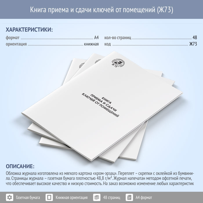 Книга приема и сдачи ключей от помещений (48 стр., Ж73) в Волгограде купить