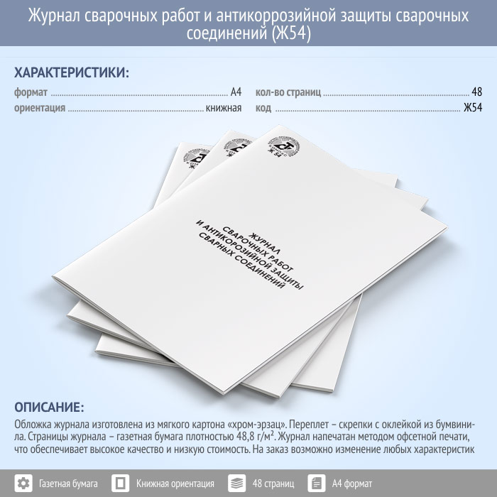 Журнал сварочных работ и антикоррозийной защиты сварочных соединений (48 стр., Ж54) в Волгограде купить
