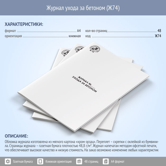 Журнал ухода за бетоном (48 стр., Ж74) в Волгограде купить