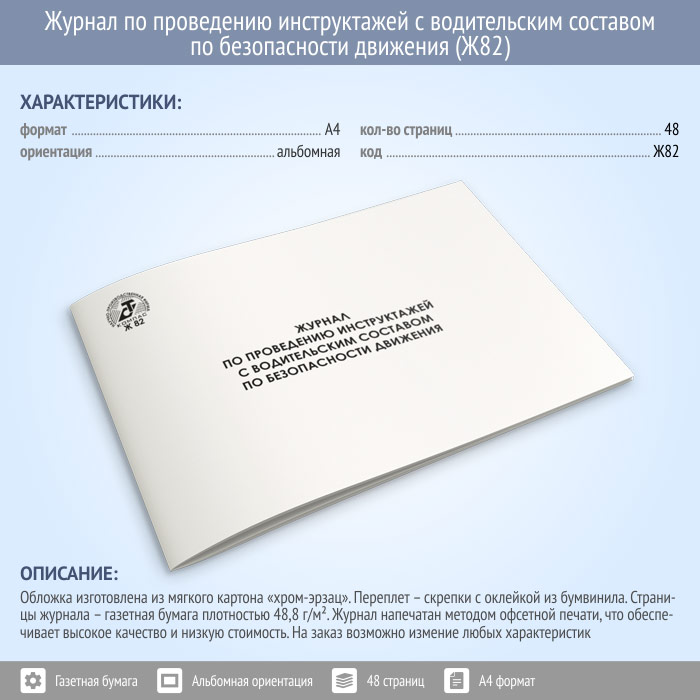 Журнал по проведению инструктажей с водительским составом по безопасности движения (48 стр., Ж82) в Волгограде купить