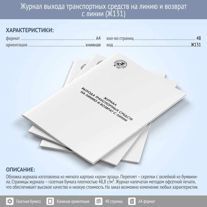 Журнал выхода транспортных средств на линию и возврат с линии (48 стр., Ж131) в Волгограде купить