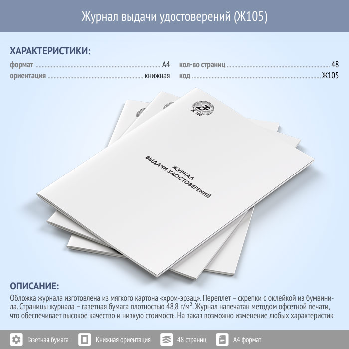 Журнал выдачи удостоверений (48 стр., Ж105) в Волгограде купить