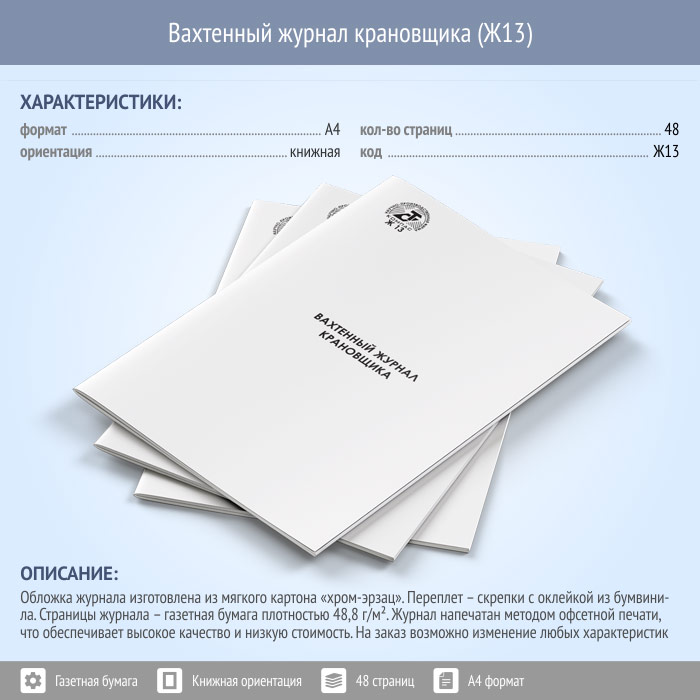 Вахтенный журнал крановщика (48 стр., Ж13) в Волгограде купить