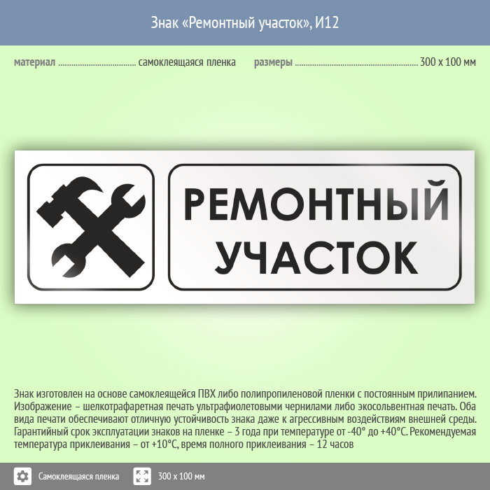 Знак «Ремонтный участок», И12 (пленка, 300х100 мм)