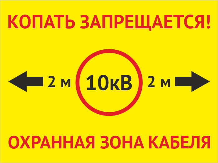 Табличка «Охранная зона кабеля 10 кВ. Копать запрещается», OZK-01 (металл, 400х300 мм) в Волгограде купить