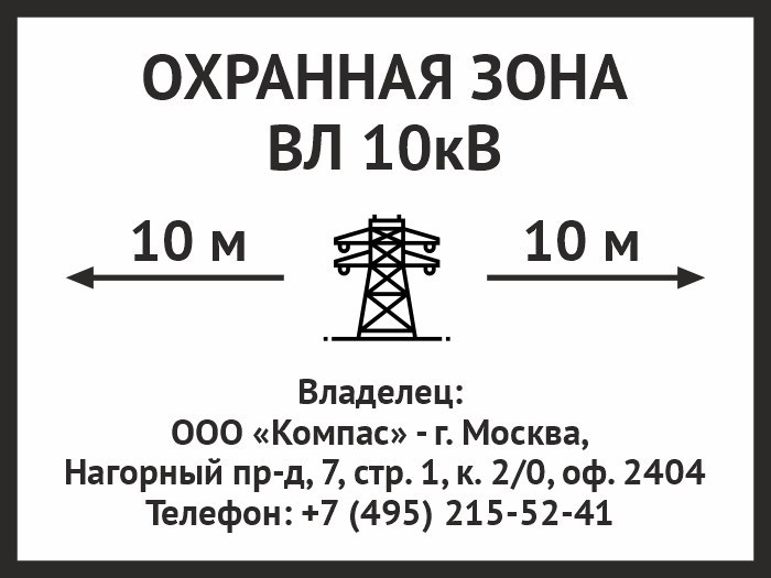 Знак «Охранная зона ВЛ 10 кВ (высоковольтной линии)», OZK-07 (металл, 400х300 мм) в Волгограде купить