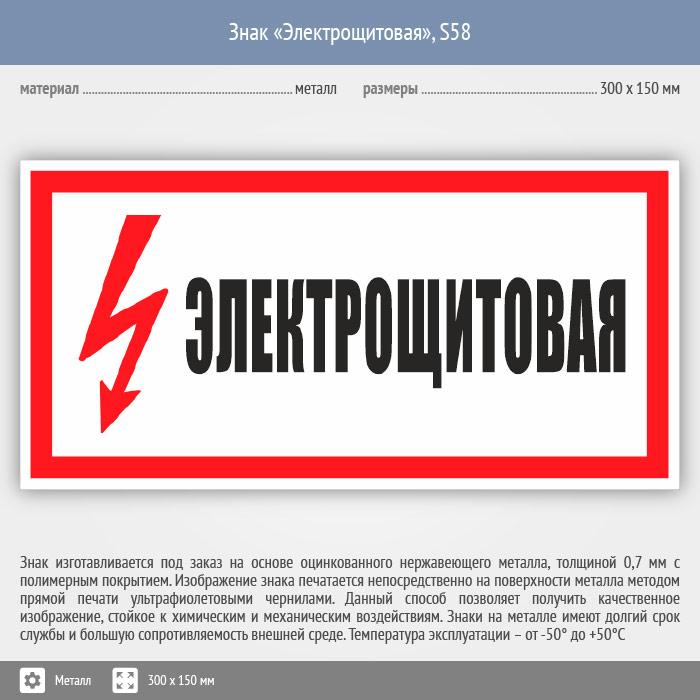 Знак (плакат) «Электрощитовая», S58 (металл, 300х150 мм) в Волгограде купить