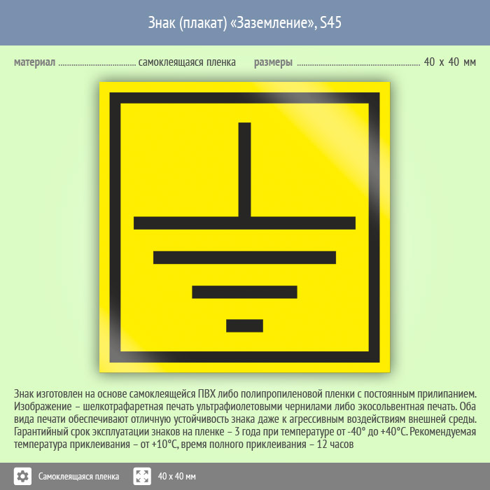 Знак (плакат) «Заземление», S45 (25 штук пленка, 40х40 мм) в Волгограде купить