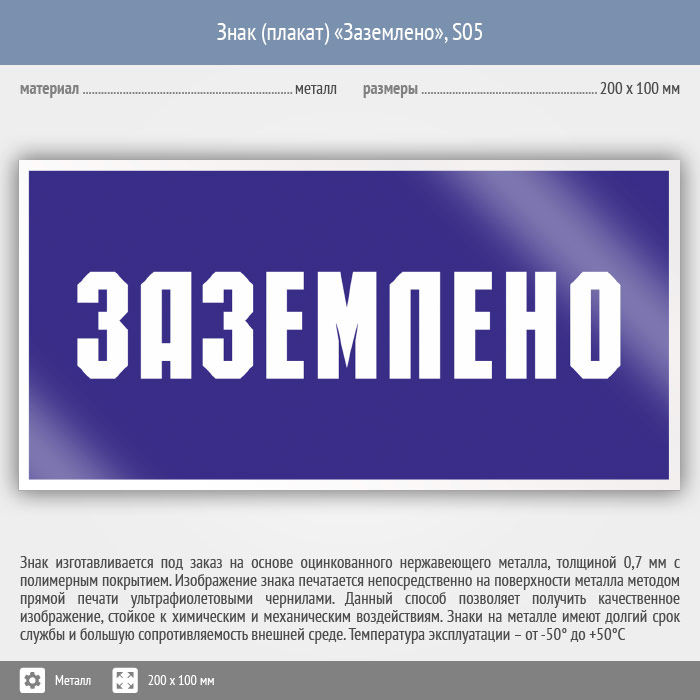 Знак (плакат) «Заземлено», S05 (металл, 200х100 мм) в Волгограде купить