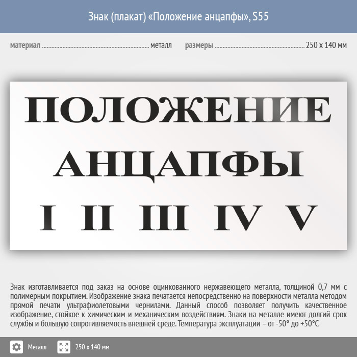 Знак (плакат) «Положение анцапфы», S55 (металл, 250х140 мм) в Волгограде купить