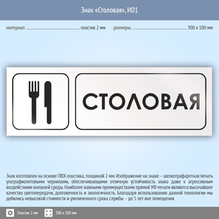 Знак «Столовая», И01 (пластик, 300х100 мм) в Волгограде купить