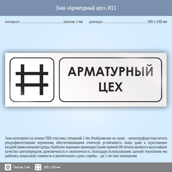 Знак «Арматурный цех», И11 (пластик, 300х100 мм) в Волгограде купить