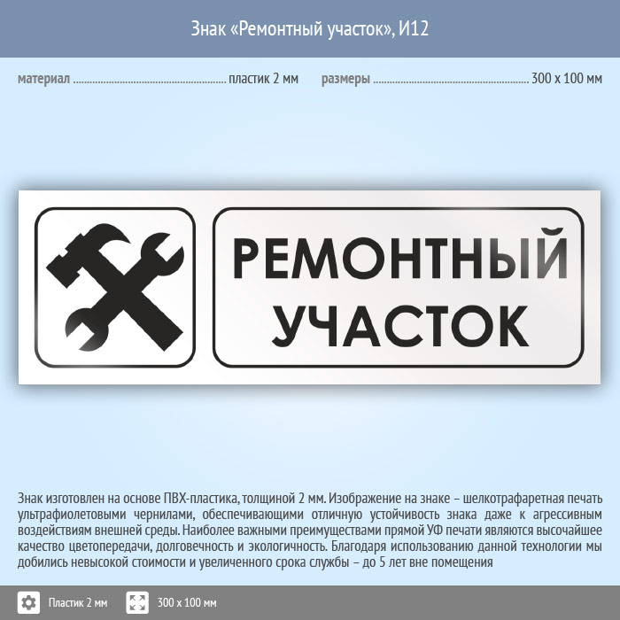 Знак «Ремонтный участок», И12 (пластик, 300х100 мм) в Волгограде купить