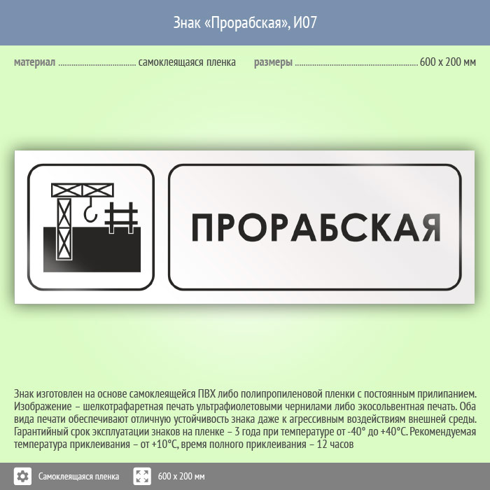 Знак «Прорабская», И07 (пленка, 600х200 мм) в Волгограде купить