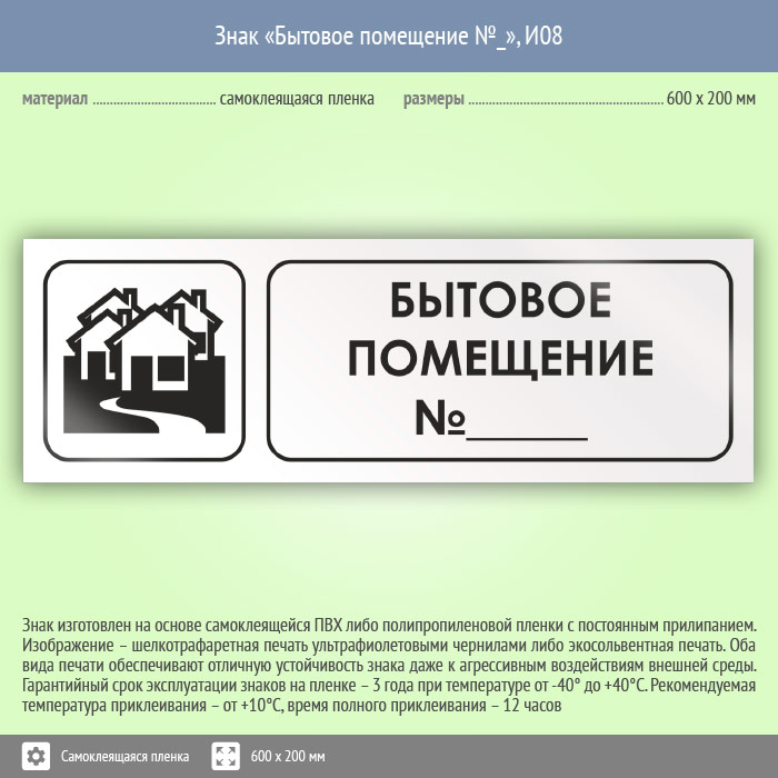 Знак «Бытовое помещение №_», И08 (пленка, 600х200 мм) в Волгограде купить