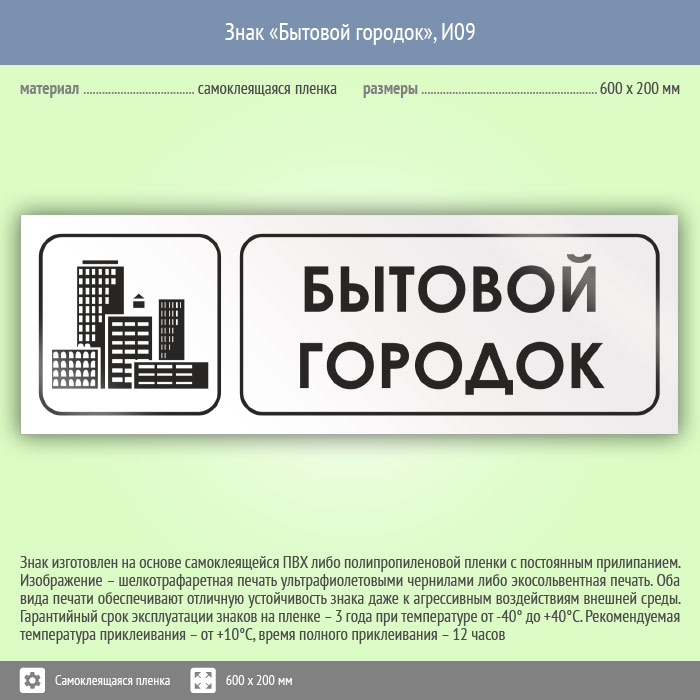 Знак «Бытовой городок», И09 (пленка, 600х200 мм) в Волгограде купить