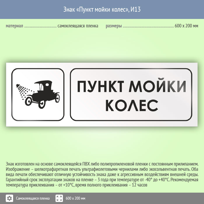 Знак «Пункт мойки колес», И13 (пленка, 600х200 мм) в Волгограде купить