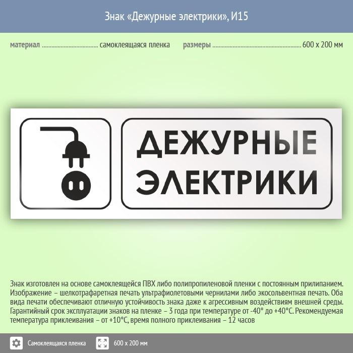Знак «Дежурные электрики», И15 (пленка, 600х200 мм) в Волгограде купить