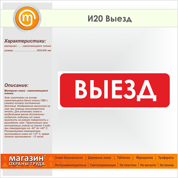Знак «Выезд», И20 (пленка, 900х300 мм) в Волгограде купить