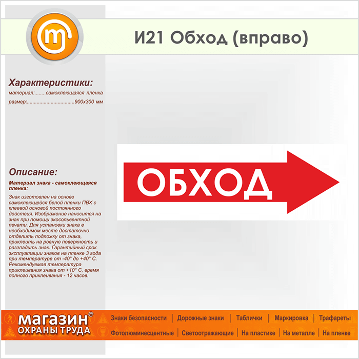 Знак «Обход (вправо)», И21 (пленка, 900х300 мм) в Волгограде купить