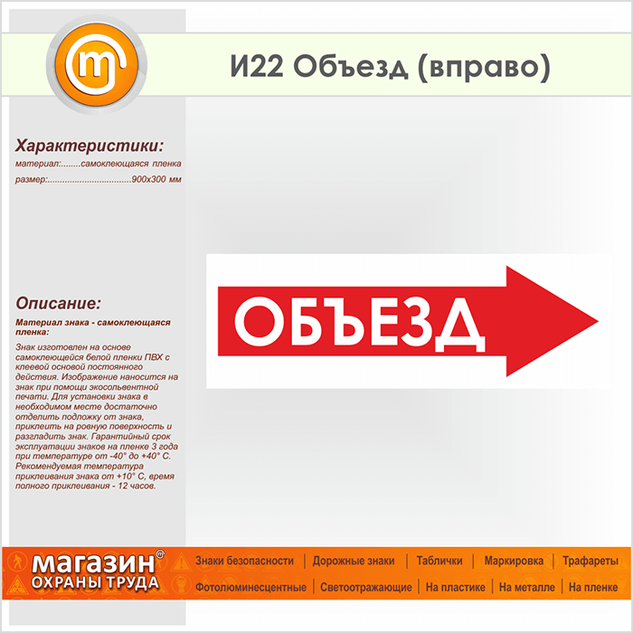 Знак «Объезд (вправо)», И22 (пленка, 900х300 мм) в Волгограде купить